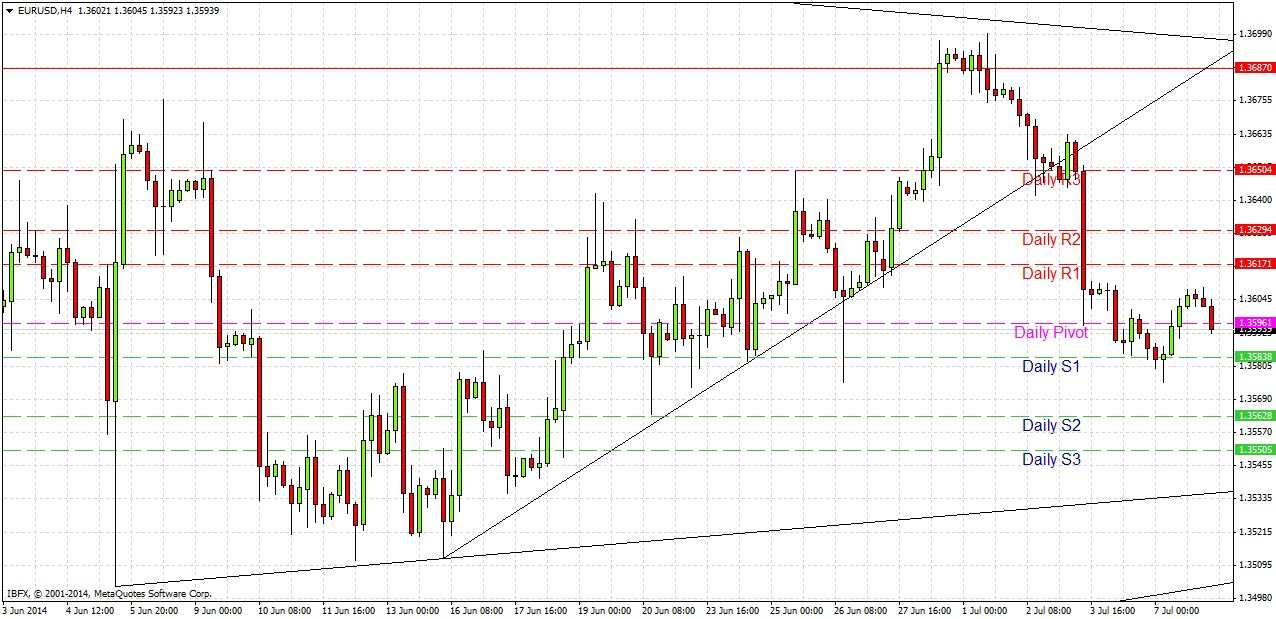 As expected, yesterday was a very quiet day, with a total range of only about 33 pips on the GMT daily candle, which was hardly more than the range from 4th July, which was a major public holiday. I did write yesterday morning that the area at around 1.3575 might prove to be supportive enough to have set the low for the day and I was right about that. Yesterday was actually the first up day for the whole previous week.