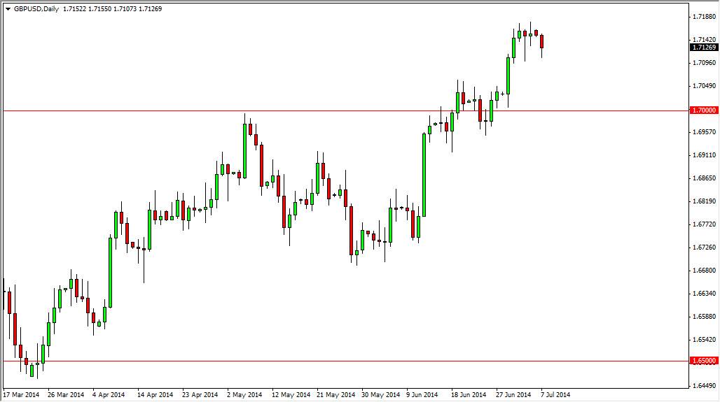 Don’t fight the trend, ever. I believe that the trend since the end of March has been rather strong, even though we did have a bit sideways during part of it. Ultimately though, we build up enough pressure to break out above the significant resistance, and I believe that the longer-term chart certainly look very positive. Breaking out to the upside sends this market heading to the 1.75 handle as I mentioned previously, and I think we go above there as the 1.7050 level was without a doubt in my opinion much more resistive than the 1.75 handle, which ultimately should be broken to the upside.