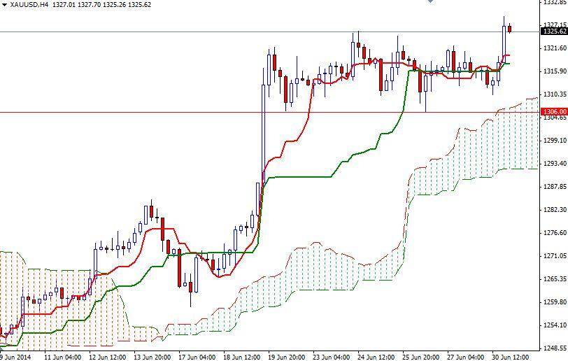The XAUUSD pair had a positive day as weakness in the U.S. dollar increased investors’ appetite for gold and pushed prices for the precious metal to their highest close in fourteen weeks. Geopolitical concerns returned to the forefront after Ukraine ended a cease-fire with separatists and Iraq intensified an offensive to recapture Tikrit. Yesterday, data from the world’s largest economy were mixed. Chicago purchasing managers’ index came in weaker than expected with a print of 62.6 but the National Association of Realtors reported that pending home sales climbed 6.1% in May.