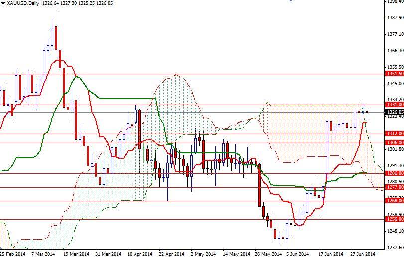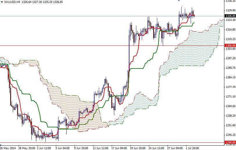 However, the bulls have been struggling to break through the 1331 resistance level -which I think as a vital point for the bulls to push prices higher- for the last two sessions. Market participants are understandably in a more cautious mode ahead of the Labor Department’s monthly jobs report. Although the ADP's report isn’t so reliable predicting the official data, it is pointing to a better non-farm payrolls reading.