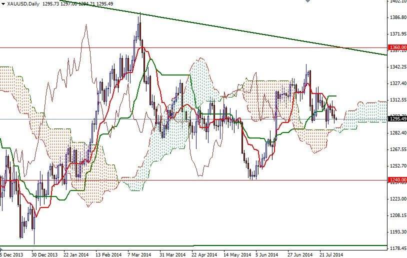The XAU/USD pair had three bearish days in a row as the American dollar continued to gain strength. Demand for the greenback increased after the U.S. GDP report beat estimates and the Federal Reserve announced a sixth straight $10 billion cut to its asset-purchases program. Data released by the Commerce Department showed that the world's largest economy grew at an annual rate of 4% in the second quarter. Although policy makers stayed on course to end the purchase program in October, they repeated that "it likely will be appropriate to maintain the current target range for the federal funds rate for a considerable time after the asset purchase program ends".