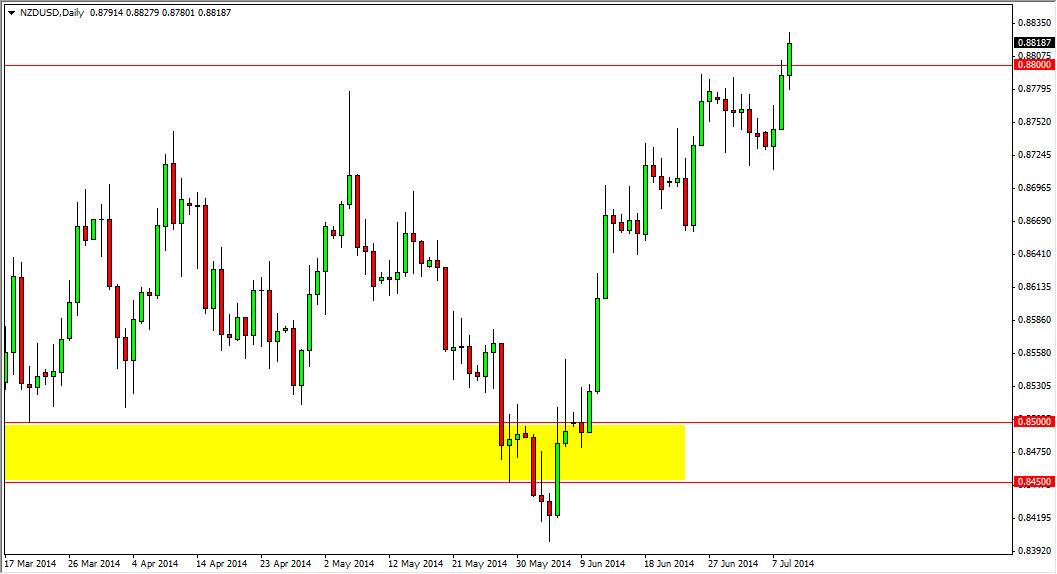 On the other hand, there is the possibility that we break the top of the range for the session, and that for me is just as valid of a positive signal as that pulling back would be. The clustering of the marketplace just underneath the 0.88 handle should be continue to offer support even if we break down a little bit, and I do truly believe that the breakout signals a new leg higher.