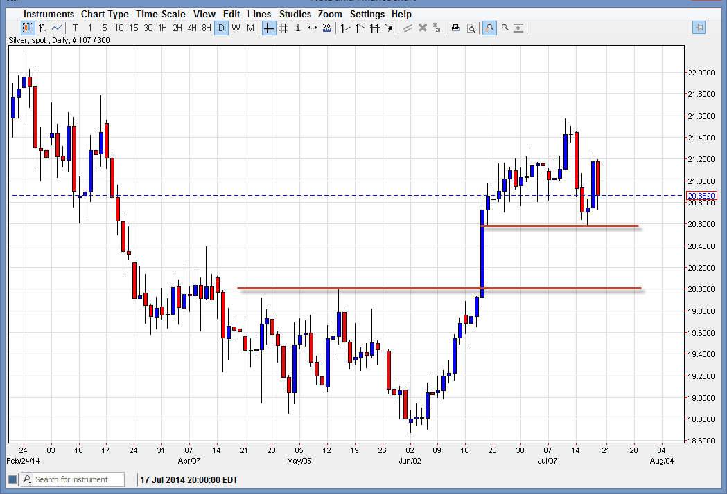 The silver markets were drastically oversold recently, and I feel that we are about to change that mistake. After all, recent comments by the Federal Reserve chairwoman Janet Yellen suggesting that the economy will still need to be supported, even after we get out of recession. This of course should be a bit destructive for the US dollar and its value, and it shows that there will continue to be easy money policies coming out of Washington DC. On top of that though, it appears that the European Central Bank is set to have easy monetary policies put in motion, and as a result traders will look to hard assets in order to retain their wealth.
