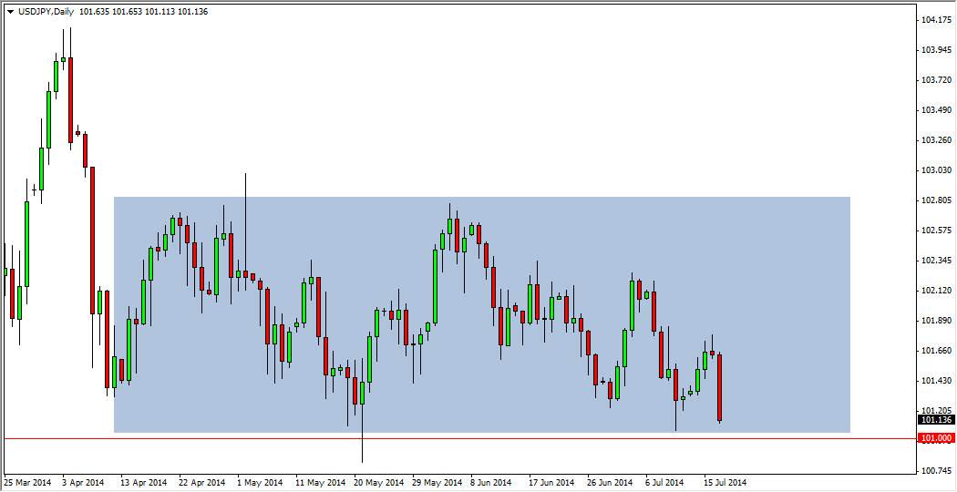I’m starting to think that perhaps the 100 level is a bit of a “line in the sand” in this market. I wonder whether or not it doesn’t have something do with the Bank of Japan, and its desire to have a weaker Yen. I can’t say that the Bank of Japan is stepping in and buying somewhere near the 101 level, but what I do know is that the market really is struggling to fall much farther than that area. With that, I think you have to assume that there is serious amounts of money underneath that are trying to keep the market somewhat afloat.