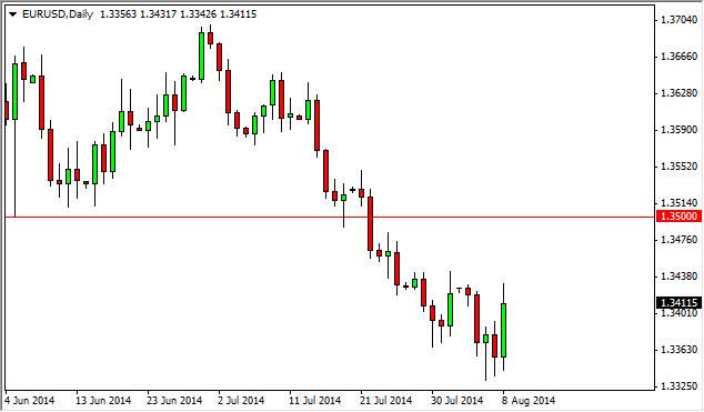 The EUR/USD pair found support during the day on Friday near the 1.33508 handle, and then bounced in order to form a fairly positive candle. We have seen support in this region lately, so it is possible that we continue to bounce a bit. However, I feel that the 1.35 level will be rather significant resistance, so a bounce in here is probably going to be relatively short-lived.