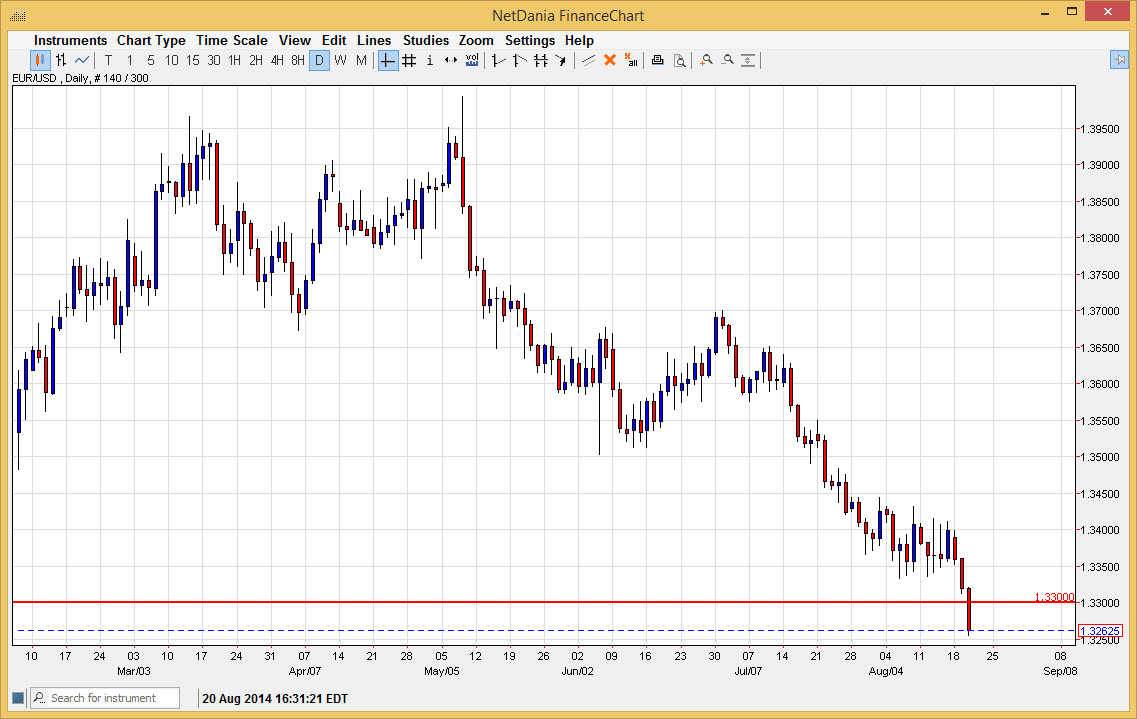 With that, I believe that this market will continue to break down, and the market moving below the 1.33 level is in fact very bearish. The breaking down below there sends the market looking for another support level, and in my estimation that is and until we see the 1.30 handle. Granted, it will be very choppy on the way down there, but I do believe that’s where we end up given enough time as it is a large, round, psychologically significant number, and therefore a magnet for price.