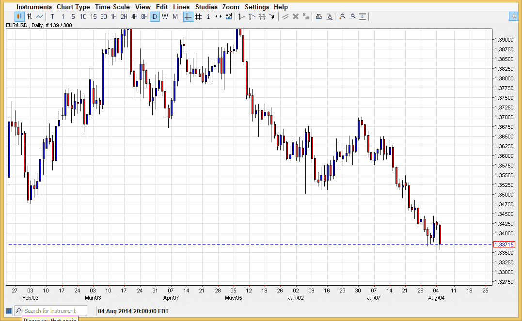 The EUR/USD pair fell during the bulk of the session on Tuesday, and even made a fresh, new low. Because of this, the market could continue lower, and aim for the next support level that I see being significant, the 1.33 handle. This is based upon longer-term charts, and I believe that the market is in fact aiming for that area overall. Yes, I can see that the market is oversold at this point, but ultimately we should continue to see the US dollar gained against the Euro, and if we managed to break below the 1.33 handle that would in fact be a massively bearish signal.