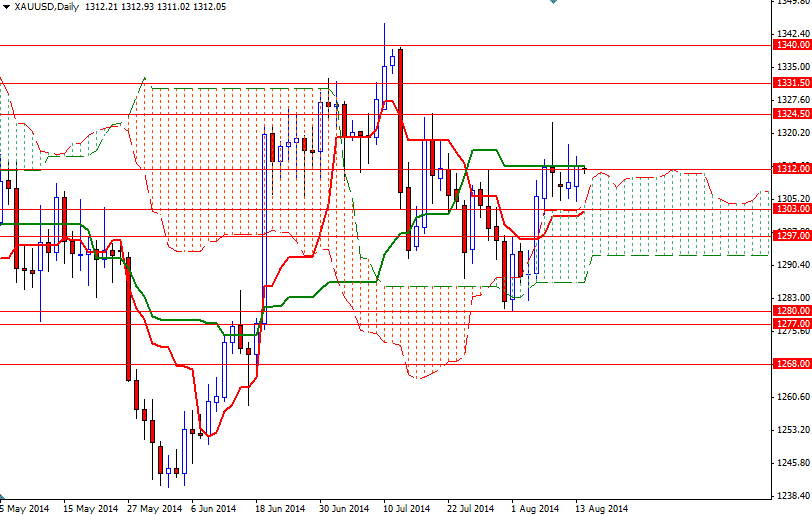 Gold gained ground against the greenback for a second consecutive session on Wednesday as disappointing U.S. economic data and developments in the Middle East and Ukraine increased the metal’s safe-haven appeal. The XAU/USD pair traded as high as $1314.84 an ounce after a report released from the Commerce Department showed that retail sales were virtually unchanged in July. Although weak data reinforced the case for the Fed to keep the benchmark federal funds rate near zero for a long time, it might be a bit early to say that the U.S. economy will have trouble in the third quarter.