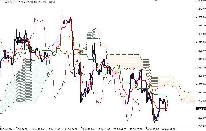 The XAU/USD pair (Gold vs. the American dollar) closed yesterday's session with a loss but remained within the last two days of trading range. Currently the pair is trading at $1288.58 an ounce and prices are steady during the Asian session today. The market has been bearish since the bulls failed to overcome the resistance around the 1340 level and as a result we are back to the 1286 level.
