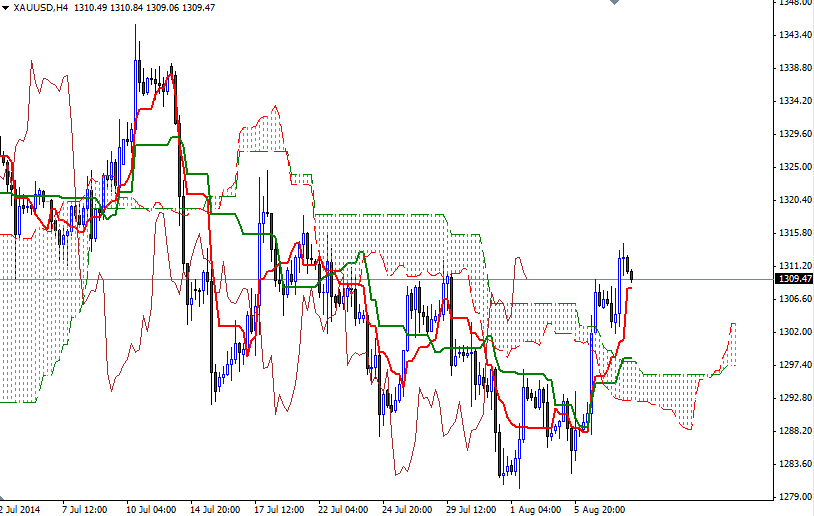 Gold prices rose for a second straight session on Thursday to settle at their highest level in thirteen days as the conditions in the marketplace increased desire for safe haven diversification. Support from the heightened geopolitical tensions offset a better-than-expected reading on unemployment claims and helped the XAU/USD pair to bounce from the top of the Ichimoku clouds on the daily time frame. Some investors abandoned stocks and flocked to the gold market after Russia banned agriculture imports from the United States and European Union in response to Western sanctions and President Barack Obama authorized air strikes in Iraq.