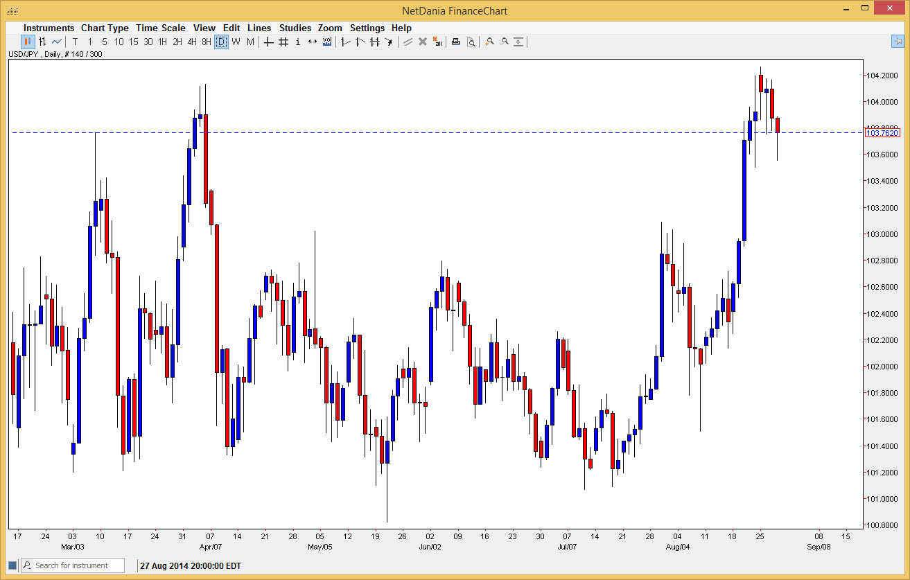 I believe that we will eventually break above that level, but it’s probably going to take quite a bit of effort and momentum building in order to do it. I think that once we get above that area, we probably head to the 110 level, and the interest-rate differential between the two economies certainly warrants some type of move like that. At the end of the day though, I believe that it will be choppy and as a result I’m focusing more on short-term moves.