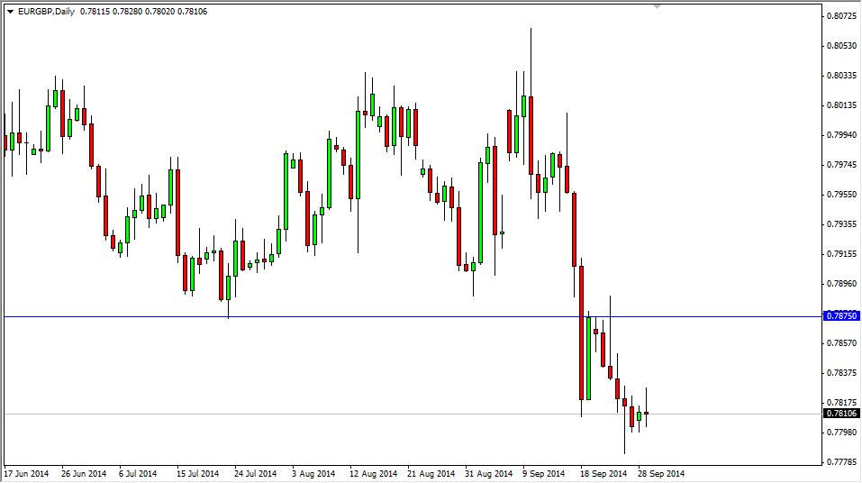 Ultimately, I believe that every time this pair rallies it will be a selling opportunity. The Euro continues to suffer against most other currencies, as the European Union continues to worry about deflation and the potential the European Central Bank loosening its monetary policy. On top of that, from a technical perspective I believe that the 0.7875 level will continue to offer resistance, thereby giving a bit of a “ceiling” in this market that I can short it from.