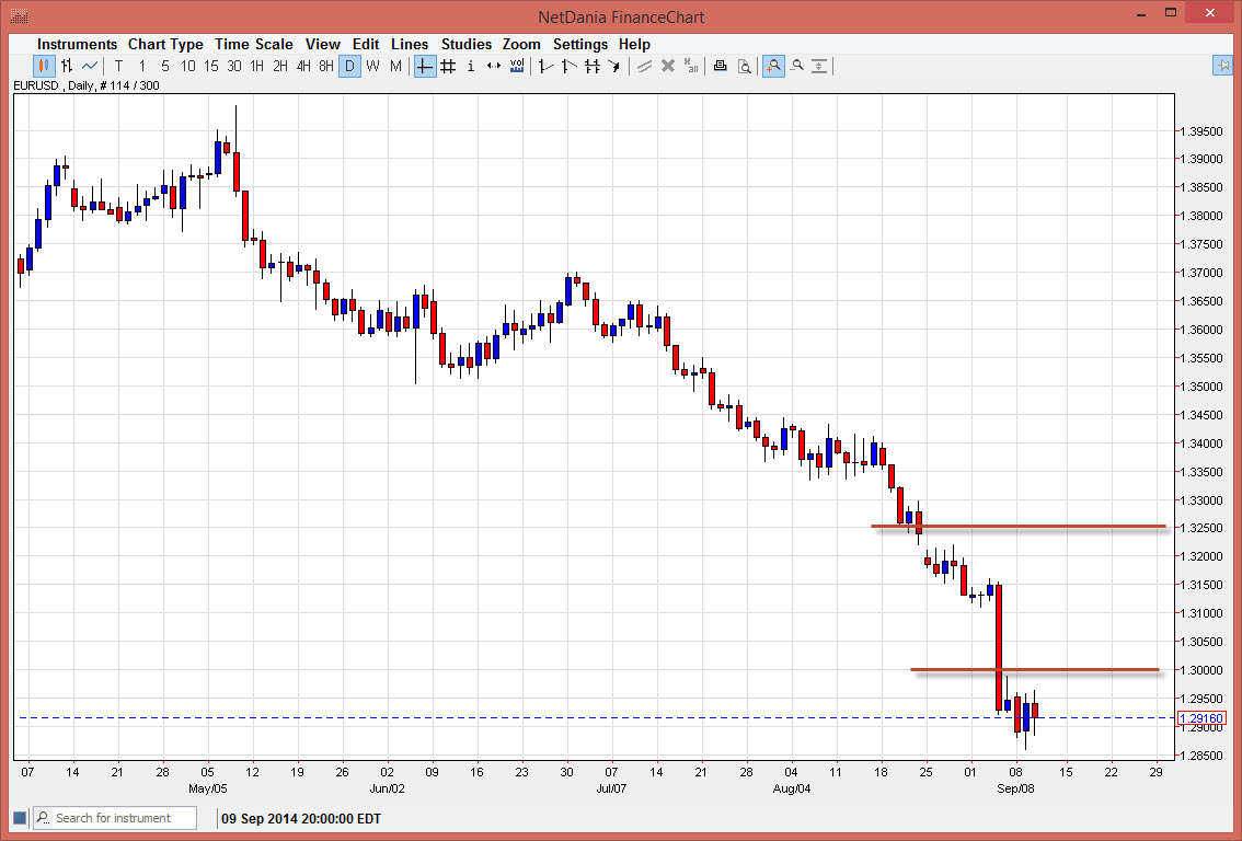I think that we are just in an oversold condition, and as a result we might get a little bit of a bounce, but after the impulsive candle from last week, there’s no reason whatsoever to think that the buyers are going to suddenly take control of this market. Was be honest here: the European Union is in a lot of trouble when it comes to economic growth. That being said, there is serious concerns about deflation, which of course is the worst thing a central banker can here. Because of this, I believe that the European Central Bank will loosen its monetary policy further, and therefore dry the value the Euro down.