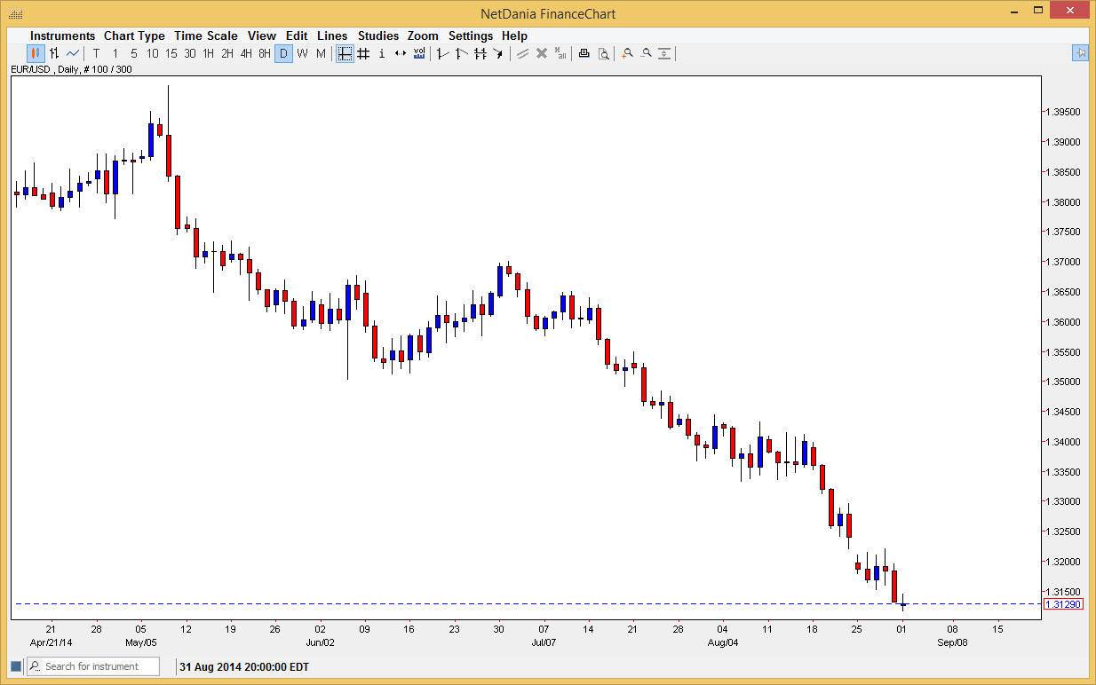 The EUR/USD pair did almost nothing during the session on Monday, which of course makes a lot of sense considering that the Americans and the Canadians both were celebrating Labor Day. Nonetheless, I believe that this market will continue to do what is done for some time, fall. I think that 1.32 level will continue to be a massive barrier, and as a result any rally at this point in time should be a nice selling opportunity. Adding more fuel to speculative fire, the ECB has an announcement later this week as far as interest rates are concerned. While I do not expect to see them ease monetary policy, I do think it’s coming fairly soon, just as the rest of the market does.