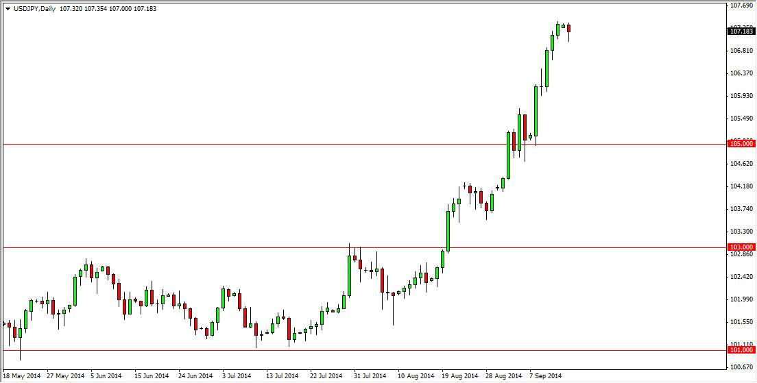I ultimately believe that this market goes to the 110 level, which is the longer-term resistance barrier above. We are currently in an area that is of little importance as far as longer-term trades are concerned, so therefore I don’t necessarily look at this as an opportunity to start buying even with a supportive candle. It is all about taking your time and been very careful about when you place your trades, especially when it comes to a longer-term trade. I think that we will have that opportunity but it should be at lower levels. Essentially you are buying the US dollar “on sale” if this pair does pullback, which of course I do think it will. Patience will be crucial.