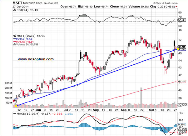 Long Microsoft Corporation (NASDAQ:MSFT) if it closes above $47 for an intermediate target at $49.50 with a strict stop loss below $45.58