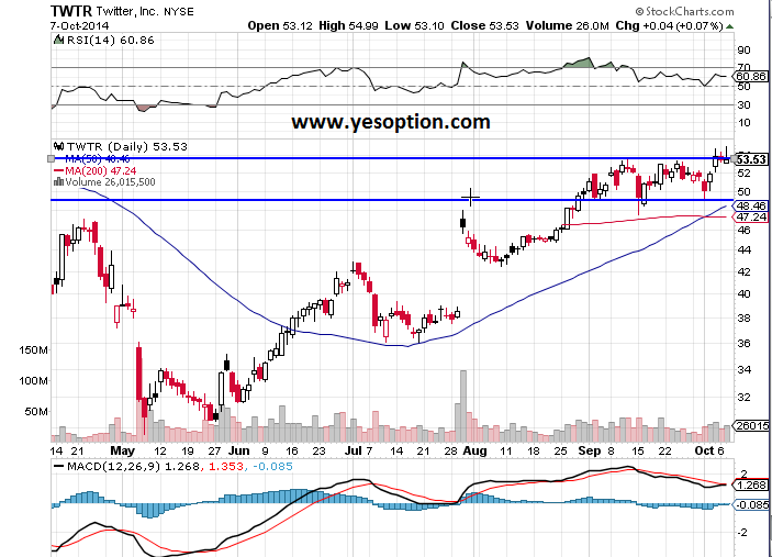 Short Twitter Inc (NYSE:TWTR) if it falls below $50 with a short term target at $45 with a strict stop loss above $54