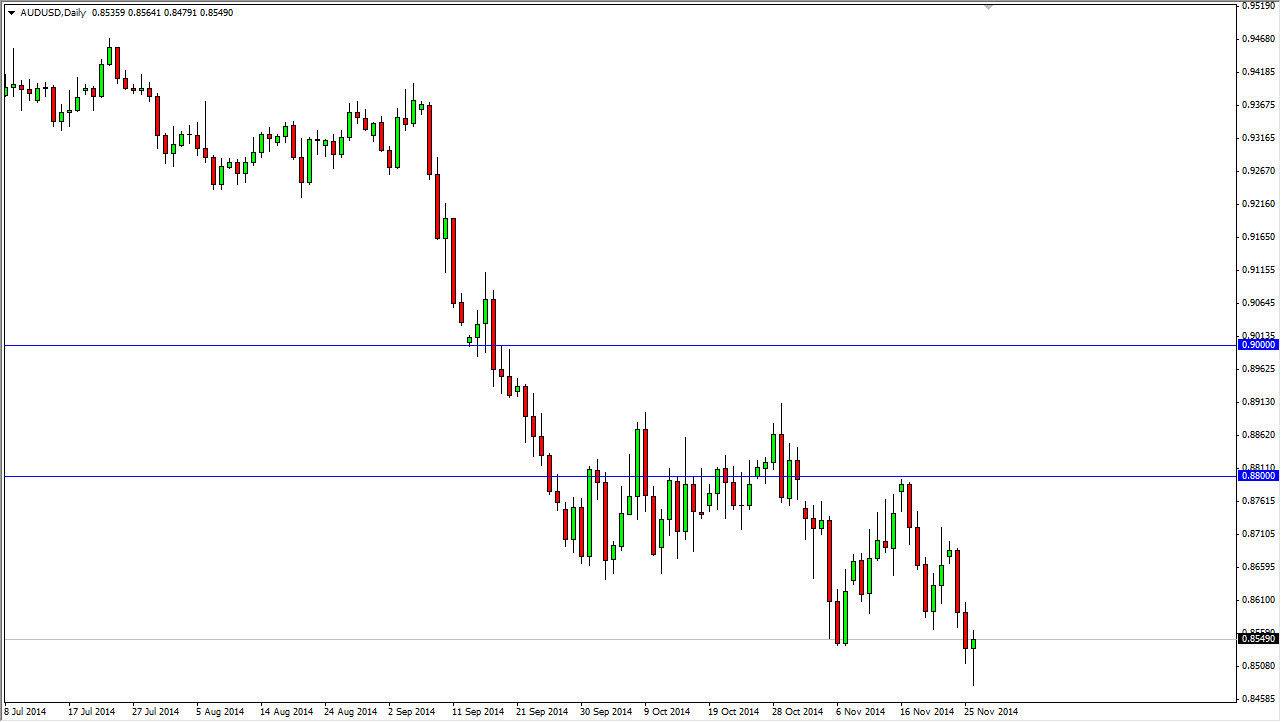 The AUD/USD pair initially fell during the course of the day on Wednesday, breaking down below the 0.85 level at one point in time. There was plenty of support below, so we ended up turning the market around to form a hammer, which of course is a very surprising and supportive candle. That being the case, the market more than likely will find buyers if we break above the top of the hammer and go back into the previous consolidation area. However, I am not interested in buying this market as I think it will simply be a decent opportunity to pick up value in the US dollar. After all, there is a reason that the Australian dollar has fallen over the longer term.