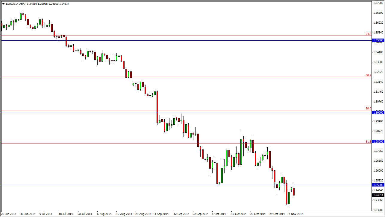 The EUR/USD pair initially tried to rally during the session on Monday, but found the 1.25 level be far too resistive to continue going higher. Because of this, the market ended up forming a fairly bearish candle as we fell, showing that the market will more than likely continue in the downtrend that we have been stuck in for quite some time. As you know, I have been saying for some time that you should sell all of the rallies that you see in this market, and the Monday session was a perfect example of that.