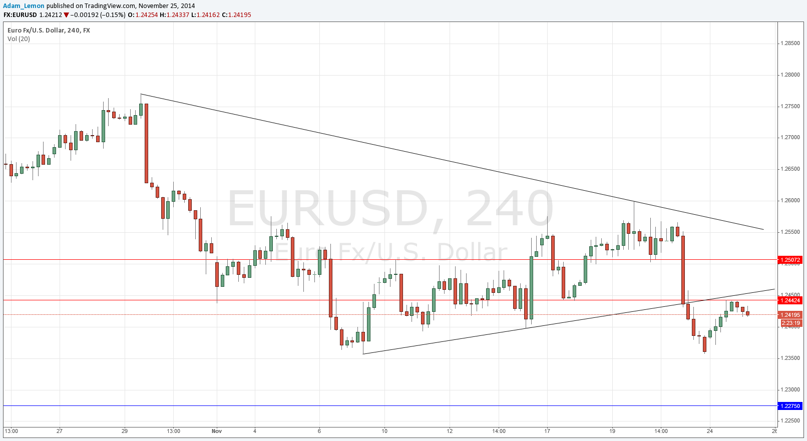 I wrote yesterday that it would not be surprising if this pair was to see some kind of bullish pull back during the day, and this is exactly what happened. It was also not surprising that on such a relatively quiet day, the flipped support to resistance level at around 1.2445 was the high of the day, although unfortunately this happened late after the London session, not giving a good opportunity for a short trade.