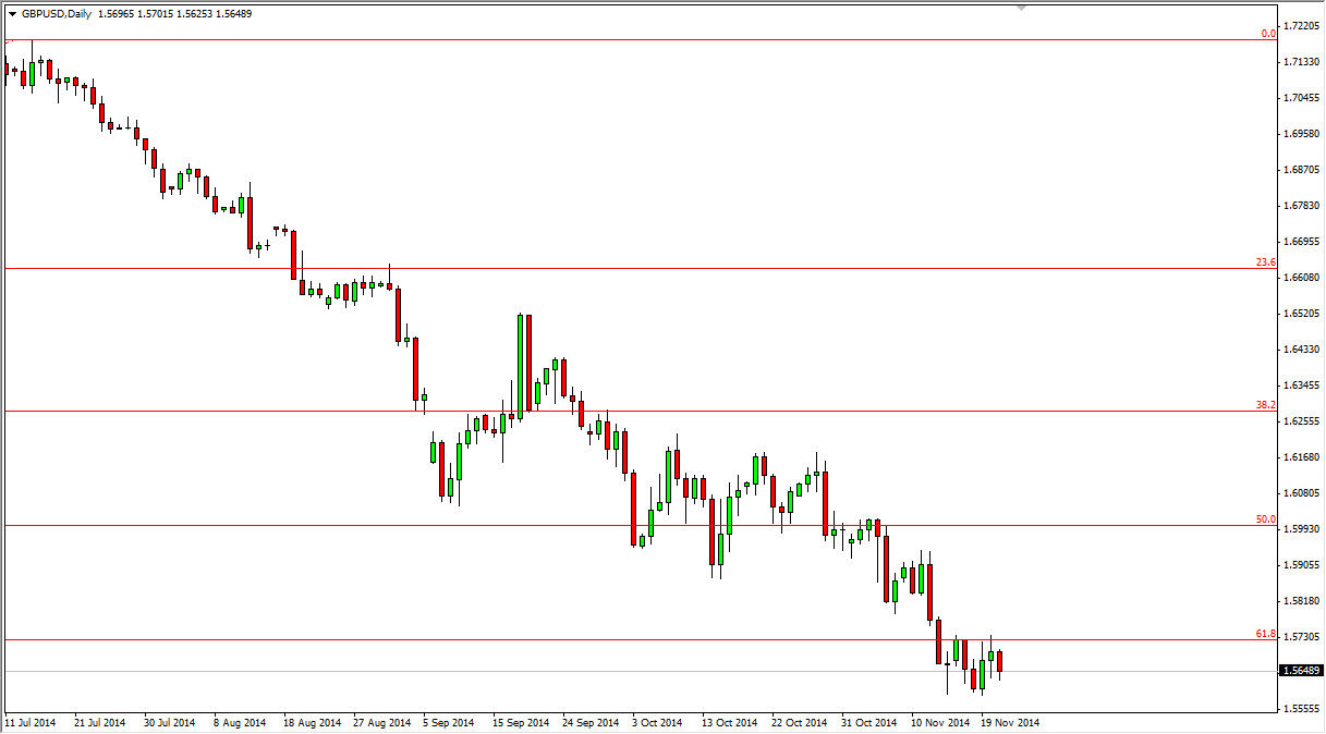 The GBP/USD pair fell slightly during the course of the session on Friday, as we continue to see some grinding in this marketplace. It makes sense though, because the 1.57 level was massively supportive, is now being tested as resistance. It’s probably only a matter of time though before we see a significant breakdown. We are below the 61.8% Fibonacci retracement level of the longer-term trend, and therefore that typically means that you will eventually make a “round-trip” to the beginning of the uptrend. It is because of this that I am waiting for a break down below the recent lows over the last week or so in order to start shorting again.