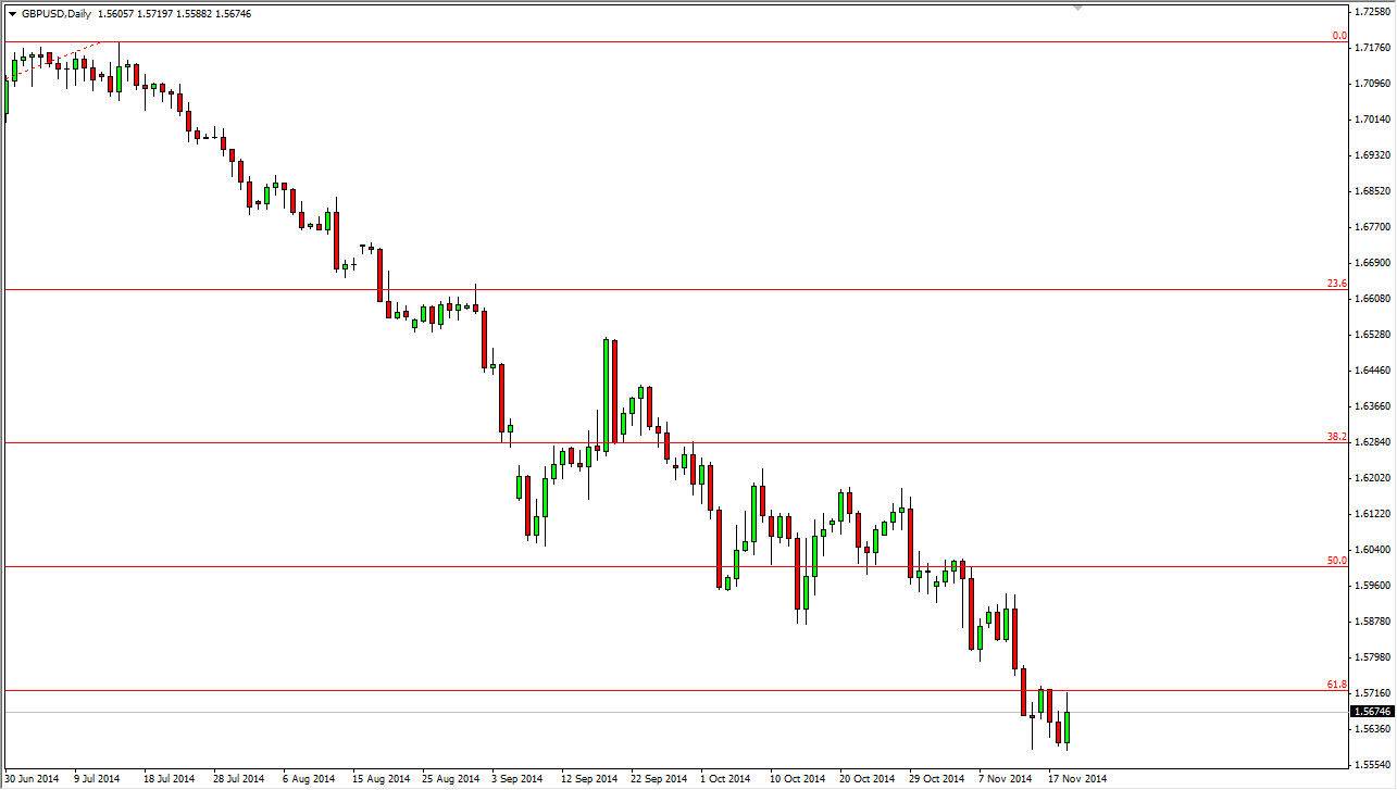 The fact that we have broken down below the 61.8% Fibonacci retracement level tells me that this market is more than likely ready to go much lower. Because of that, I will continue to short this market over the longer term. It appears that the British pound is going to follow the same path as the Euro, as it continues to suffer against the US dollar based upon US dollar strength. Ultimately, the market should provide plenty of selling opportunities going forward, and both short and long-term traders will continue to favor the Dollar in my opinion.
