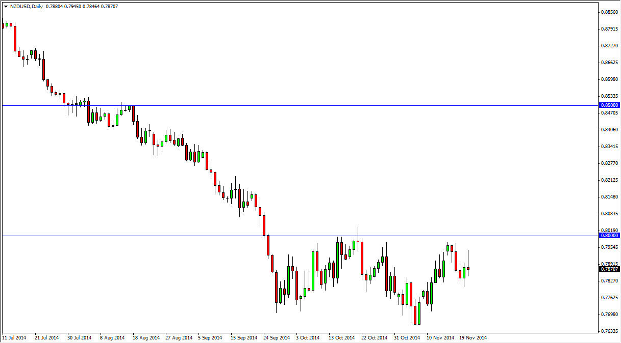 During the session on Friday, the New Zealand dollar tried to rally during most of the day. However, as we approached the 0.7950 region, without enough selling pressure to turn things back around and form a nice-looking shooting star. The shooting star is one of my favorite sell signals, as it shows that the market tried to rally, but simply could not hang onto the gains at all. With this, I believe that we are going to continue the consolidation area that we have seen in this market over the last couple of months, meaning we should then head down to roughly 0.77. This is a nice short-term selling opportunity, but at the end of the day I think that the New Zealand dollar probably breaks down much lower than that anyway.