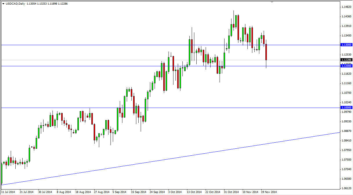 The USD/CAD pair fell rather hard during the course of the session on Friday, testing the 1.12 level. This is an area that has been both supportive and resistive in the past, so it’s not exactly huge surprise that it would offer support during the Friday session. We bounce slightly, but it is a necessarily a strong enough bounce to start buying this pair quite yet. However, I have absolutely no interest in selling this market as the US dollars without a doubt the strongest currency out there right now.