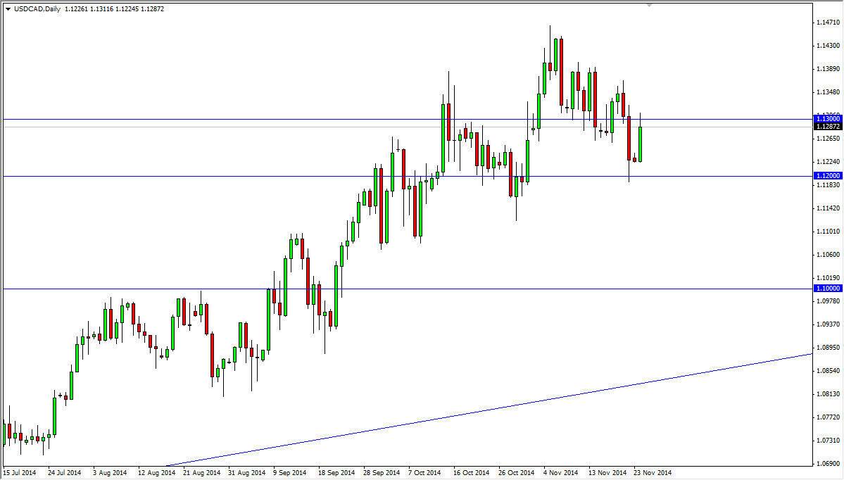 The USD/CAD pair rose during the course of the day on Monday, slamming into the 1.13 level. That area of course offered a bit of resistance as one would expect due to the fact that it was once support, and of course it is a large, round, psychologically significant number. Because of this, I feel that the market may have to pull back a little bit but should be an opportunity for the buyers to get involved in this market going forward. I believe that the 1.12 level should continue to show buying pressure and support.