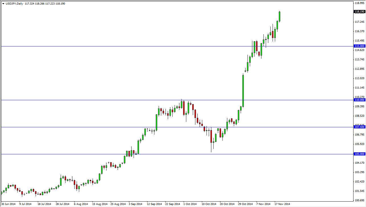 As you can see, the market certainly has been parabolic lately, but we did have a little bit of a rest after the 115 level, so it makes sense that we would continue to go higher after catching our breath in that general vicinity. I have absolutely no interest whatsoever in selling this market, because I simply believe that pullbacks will make opportunities going forward for those of us that takes a longer-term perspective.