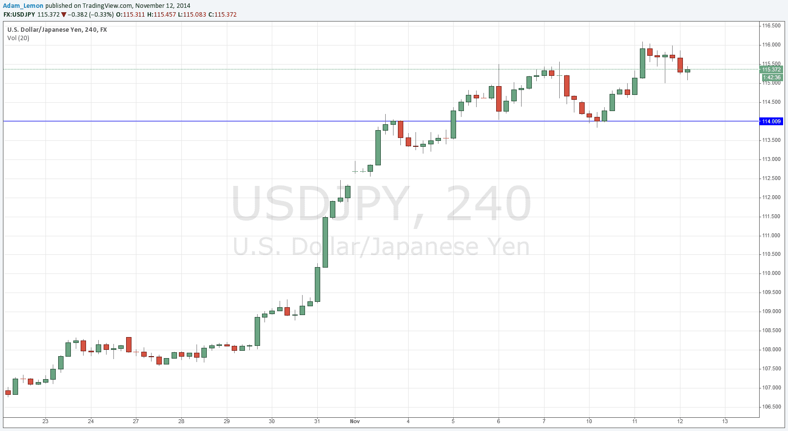 I wrote yesterday that the key yardstick was whether we were able to stay above the 115.50 level during the London session. This was in fact the case, which was a bullish sign, although the price has fallen back overnight to a low of 115.01, at which it found some support. In these bullish conditions every round number is acting as support, and 115.00 was no exception. If it is tested again quickly I am not sure it will hold. That could give us an opportunity to get in at the next support below, the level at 114.00, which would be likely to be more reliable as it is a more spaced out flipped level.