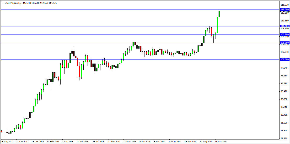 The USD/JPY pair broke to the upside during the week, but ran into a bit of trouble at the 115 level. That’s not a big surprise to me, as it is a large round number, but ultimately I believe that we do probably see a little bit of a pullback but I also look at that as potential value in the US dollar. I am buying pullbacks to that show signs of support.