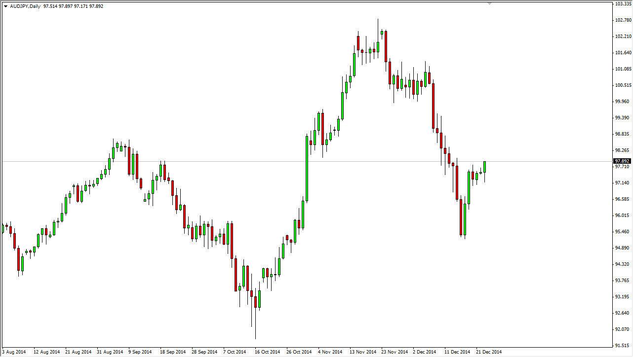 Ultimately, I believe that this market can probably go back to the 100 handle, but it might be a bit of a fight. The Japanese yen is very soft at the moment, and that’s probably the only thing that’s going to pushes market higher. We don’t necessarily have any strength coming out of the gold markets to influence the Australian dollar positively, so really at this point in time this is more or less a particularly vague “anti-yen” type of trade more than anything else.