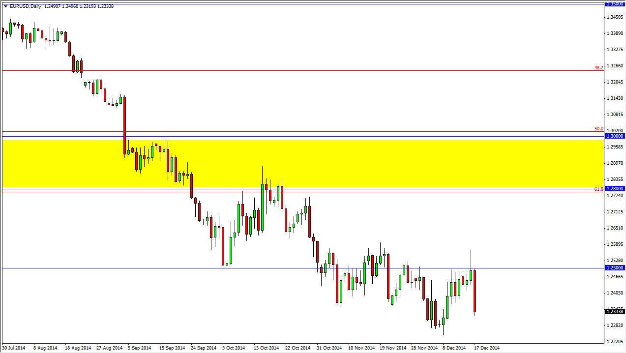 I believe that there are much lower levels ahead, and I do think that eventually this market goes all the way down to the 1.2050 level. That was the beginning of the uptrend that we have now certainly reversed, and with that I feel that this market will continue to be one that you can trade to the downside for some time. Ultimately, I feel that this market is one that will be a bit of a bandwagon for people this coming spring, as we continue to punish the Euro. The human wrong, I think eventually we turn around but that is a long way away from here.