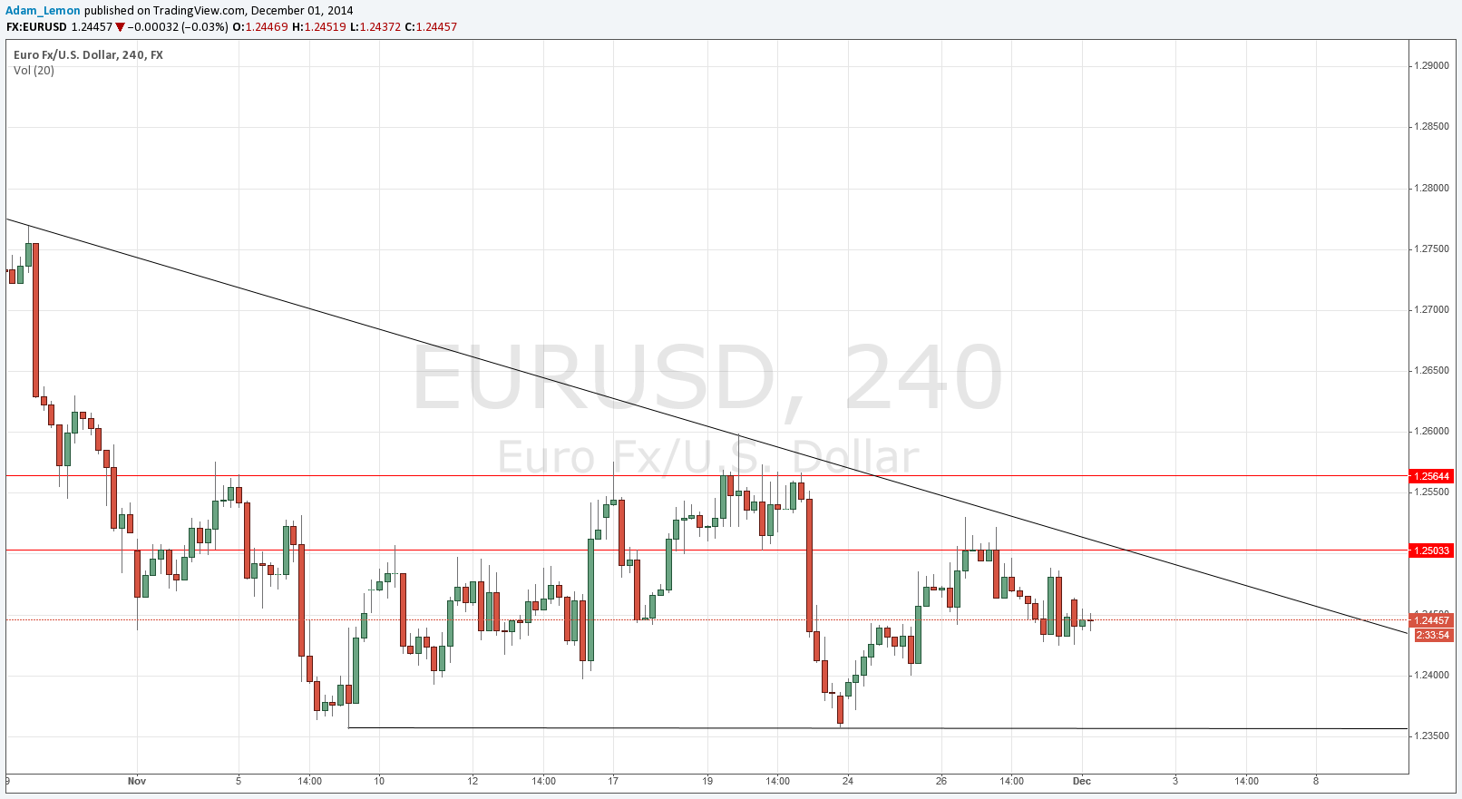 As long as the triangle lasts, we can fade both sides of it. A breakout of the triangle will be the next really key event for this pair, and a bullish breakout could be very significant, although there is a key hurdle at 1.2564 that would have to be overcome following the breakout.