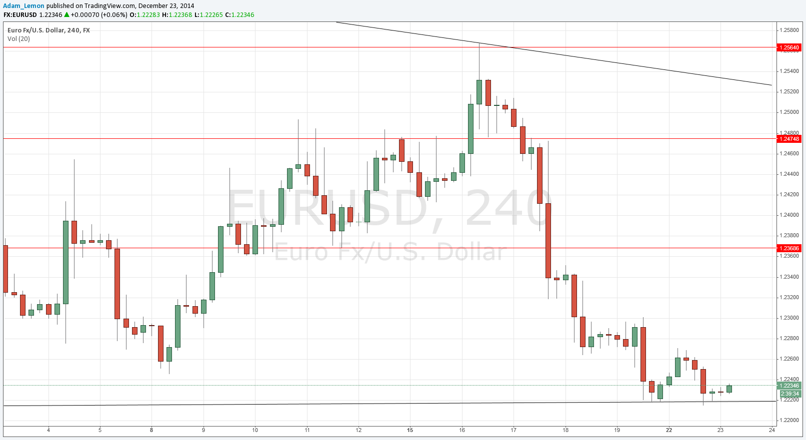 I was expecting the price to rise yesterday after we had bounced up off the very long-term bullish trend line. Although the price did hold up for most of the day it eventually fell and retested the trend line overnight, where it produced another bullish bounce, albeit a small one.