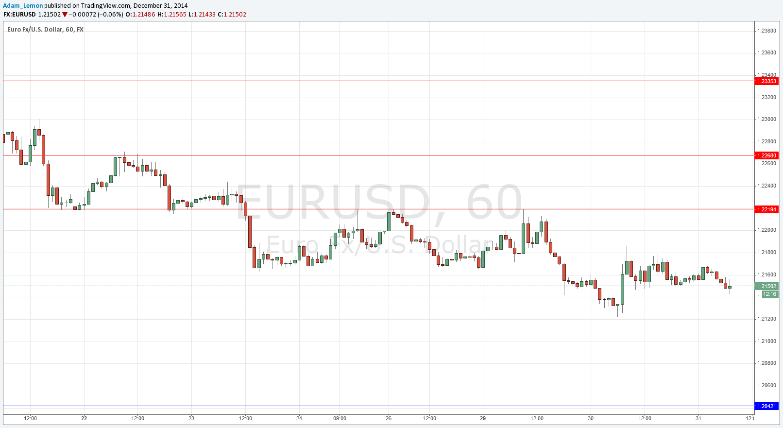 I had expected that we would reach 1.2200 yesterday but it was a very weak day overall without much clear movement or direction. The price has fallen overnight to put us back where we were at London open yesterday. The last day of the year often does produce a move, but there is no sign of it yet.