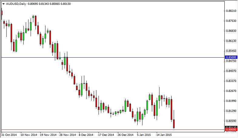 Quite frankly, it’s going to take quite a bit of tenacity a breakdown through this level. Because of this, we may see bounces from time to time before he break down, but I think that the market will ultimately do so. It just seems that no matter what happens, the US dollar continues to strengthen. That being the case, it is a bit of a “knock on effect” that the US dollar would appreciate against the Aussie dollar, because quite frankly most of the trouble isn’t coming from Asia or the Pacific. This is a matter of the US dollar appreciating so rapidly against the Euro during the day as the European Central Bank did in fact add to its quantitative easing. Because of this, the US dollar is being bought hand over fist, and that of course affects the currency markets overall. If we break down below the 0.80 level, we should probably head to the 0.78 level. Bounces that show signs of resistance will be selling opportunities.