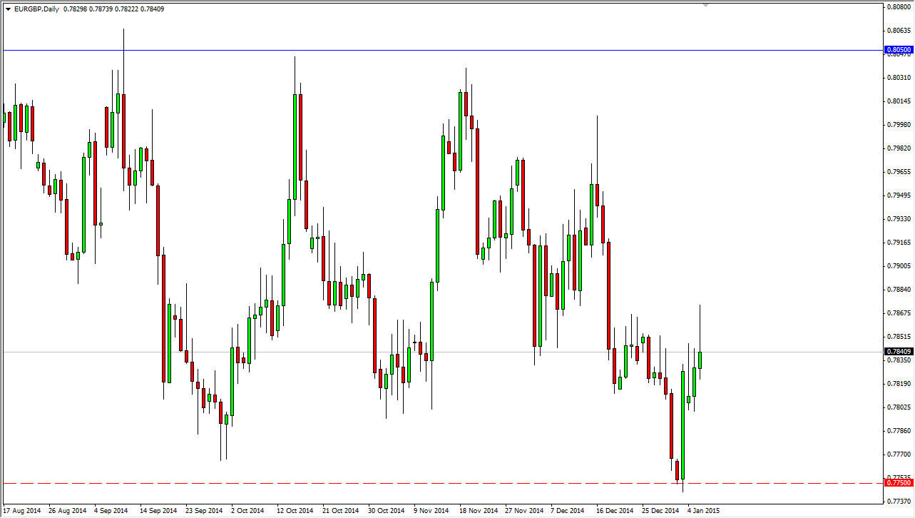 I think that the Euro is oversold in general, but not necessarily in this market. I think that we will more than likely continue to fall but I recognize that in order to get below the 0.7750 level, it will take a bit of momentum building. The EUR/USD pair is sitting on significant support on the longer-term charts, so I think that it’s only a matter of time before it bounces, but that doesn’t mean that the euro will outperform the British pound, which is of course what this particular pair measures.