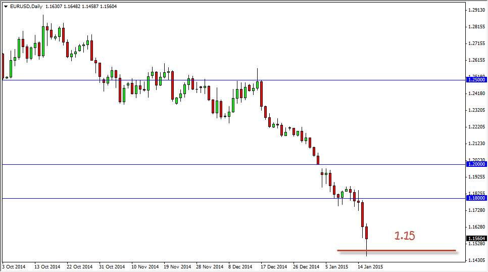 The EUR/USD pair broke down during the session on Friday, dipping below the 1.15 level, which of course is a large, round, psychologically significant number. That is a bit of surprise to me, but now we have certainly broke down below what was once thought to be massive support in the form of the 1.18 level, which even shows itself as being important on the monthly timeframe. However, as we crashed into the 1.15 level, we managed to find a bit of support and form a nice-looking hammer. This makes sense to me of course because of the fact that it is such a large number, but ultimately the question then remains whether or not this is a significant bounce waiting to happen?