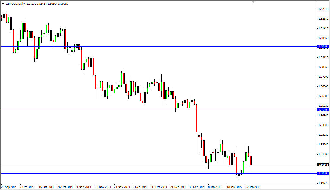 The GBP/USD pair fell during the course of the session on Thursday, as we fell all the way down to test the 1.50 level yet again. However, we did find a little bit of support there and as a result we bounced towards the end of the session. I believe that this pair continues to grind away in this area, but the 1.50 level below could end up being a tough nut to crack. Ultimately though, if we do get below there I think that this pair will grind its way lower, but I see a lot of noise between here and the 1.48 level. Because of this, I am not overly excited to aggressively short the British pound.