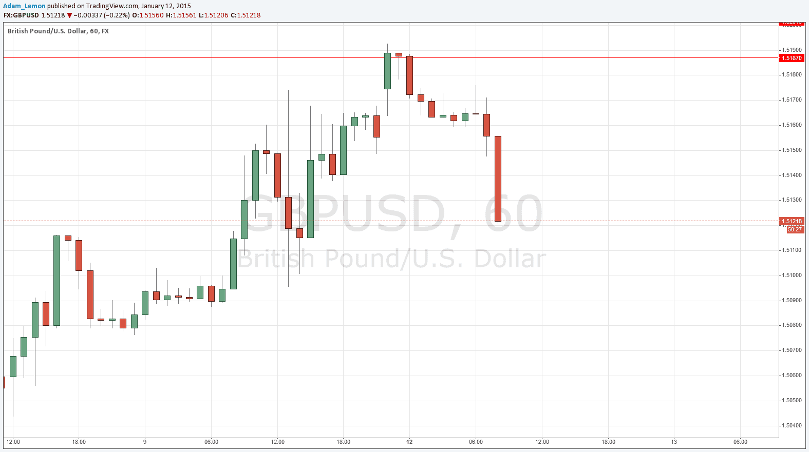 I am not giving a signal today as the best opportunity seems to have happened – unusually for this pair – before the London open in fact early in the Tokyo session last night, when the price returned to the flipped support to resistance zone from about 1.5187 to just above the round number at 1.5200. The price has been falling following its brief penetration into this zone, as at the time of writing early London trading seems to be confirming this direction, so it would be logical to look for a move downwards from here.