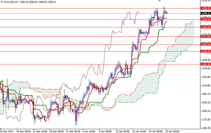 If the bulls build up enough steam and penetrate the 1305/8 barrier, then it will be possible to see the market challenging 1312 and perhaps 1319. Once beyond that, there is little to slow down the bulls' advance until the 1329.10 level. However, if the bears manage to defend their camp and prices start to fall, expect to see some support in the 1292 - 1289.70 area. Breaking below this support means the XAU/USD pair is heading back to 1283. The bears will have to capture that point if they intend to retest the 1273/2 support.