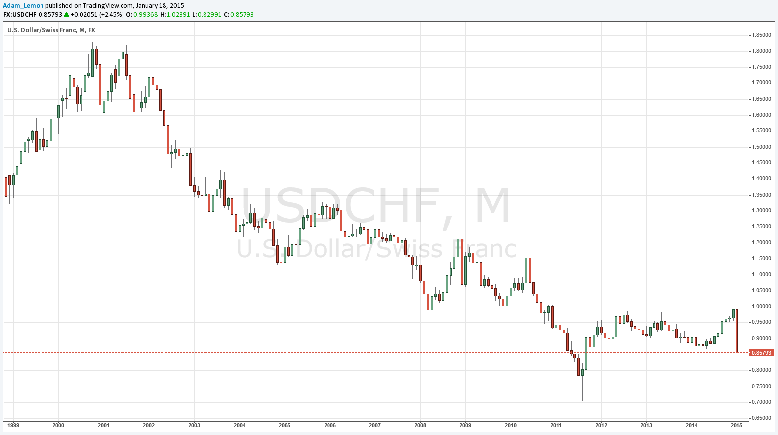 Since 2011, the Swiss Franc has been effectively pegged to the Euro at 1.20, meaning that a currency which comprised one of the 4 major currency pairs effectively became irrelevant to most traders.