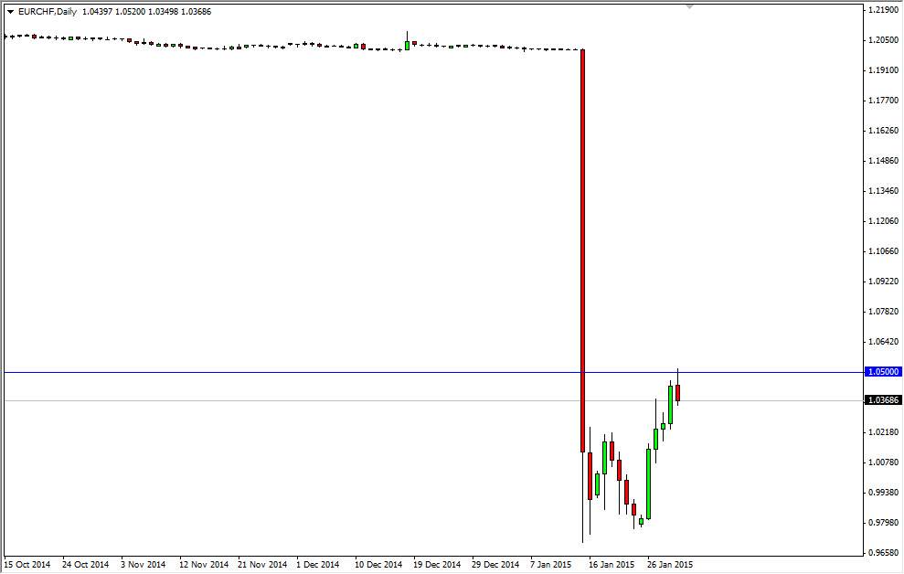 The EUR/CHF pair tried to break higher during the course of the day on Friday, but as you can see the 1.05 level offered enough resistance to turn the market back around. By doing so, the market in an up forming a shooting star which of course is a very negative sign, and the fact that it is a large, round, psychologically significant number it has of course caught my attention. We are obviously in a downtrend, so that just adds to the validity of the move.