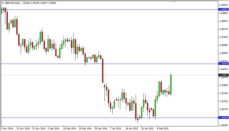 The GBP/USD pair broke higher during the course of the session on Thursday, breaking the top of the shooting star from the Wednesday session. That being the case, looks very likely that this pair will continue to go higher based upon this bullish move. Ultimately, the market should then head to the 1.55 level, which should be massively resistive based upon the fact that it was previously supportive. In fact, I am actually ignoring the fact that the British pound looks so bullish all of a sudden and looking to sell closer to that 1.55 handle which I think will bring in the longer term traders, hence larger amounts of money.