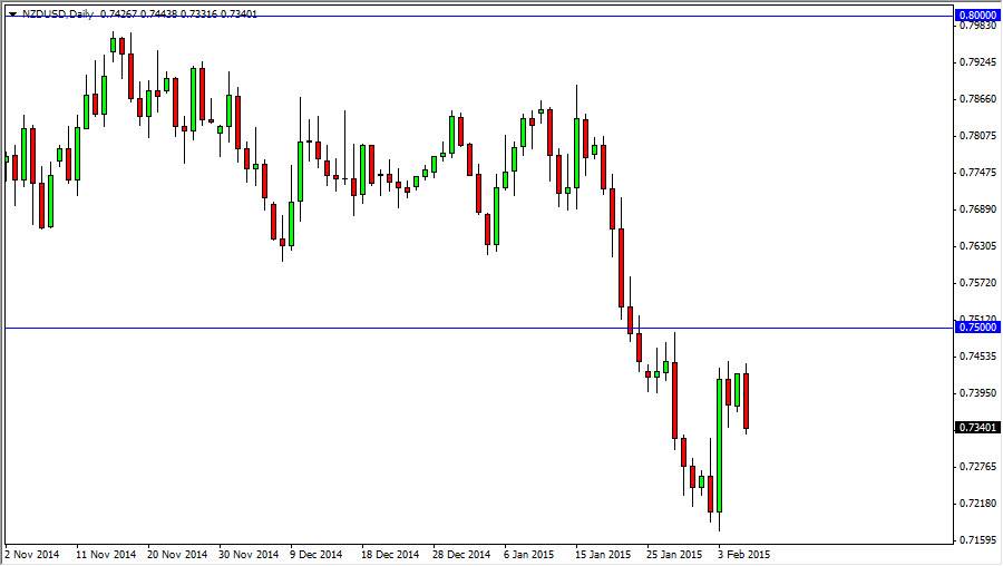 The NZD/USD pair fell during the course of the day on Friday, as the employment numbers on the United States came out stronger than anticipated. Because of this, it makes sense that the New Zealand dollar would sell off against the greenback, quite frankly because there are so many concerns about the commodity markets right now with the value the US dollar strengthening overall. After all, keep in mind that the New Zealand dollars often uses a proxy to the overall attitude on risk and commodities in general. With that, it appears that the 0.75 level above is a bit too resistive, and is I look at it I think we will continue to fall from here.
