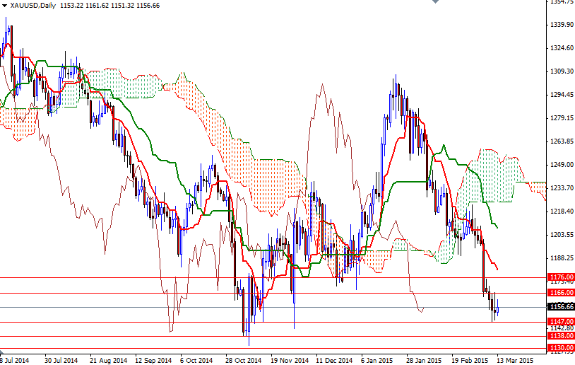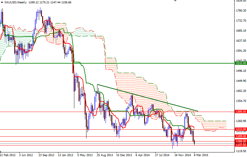 Gold ended the week down by 1% at $1157.66 per ounce as concerns grew over the prospects of rising U.S. interest rates pushed the dollar to multiyear highs and investors’ appetite for the precious metal as an alternative investment. Market participants have been speculating that the Fed might begin the normalization process as early as June since the release of the US jobs report for February. Friday's data from the Commodity Futures Trading Commission (CFTC) showed that speculative traders on the Chicago Mercantile Exchange reduced their net-long positions in gold to 81892 contracts, from 115820 a week earlier.