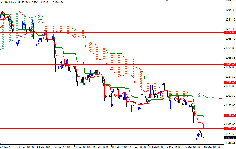 From a technical perspective, I expect the market to maintain its negative bias unless we make it back above 1189/6. The XAU/USD pair is trading below the Ichimoku clouds on the weekly, daily and 4-hour time frames and the Tenkan-Sen (nine-period moving average, red line) and the Kijun-Sen (twenty six-day moving average, green line) lines are negatively aligned. In addition, the daily Chikou-span (closing price plotted 26 periods behind, brown line) is indicative of solid downward momentum. Because of that, I think the market will have a tendency to test the 1162 - 1157 area. If the XAU/USD pair breaks down below the 1157 level, it is likely that the market will test 1147 next. To the upside, expect to see resistance at 1176 and 1189/6. The bulls have to capture this first strategic fort in the 1189/6 zone so that they can gain enough traction to head towards the 1200 - 1199 resistance.
