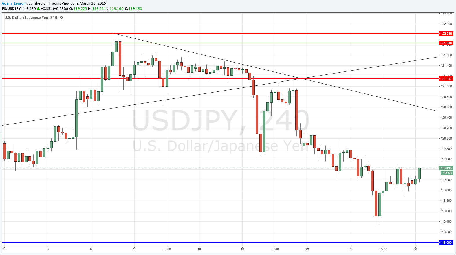Last Thursday’s signals were not triggered as although the price reached 119.25 the first bearish reversal happened above that price.